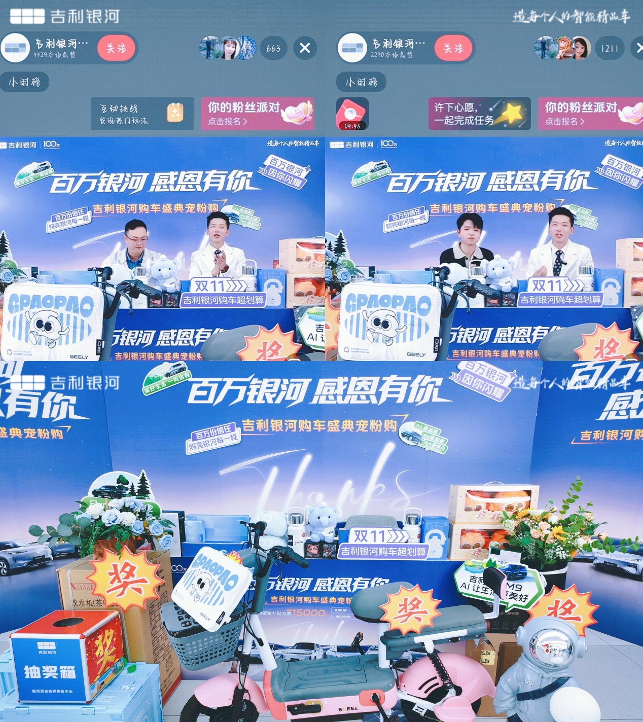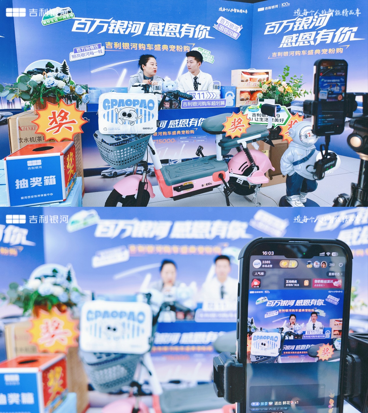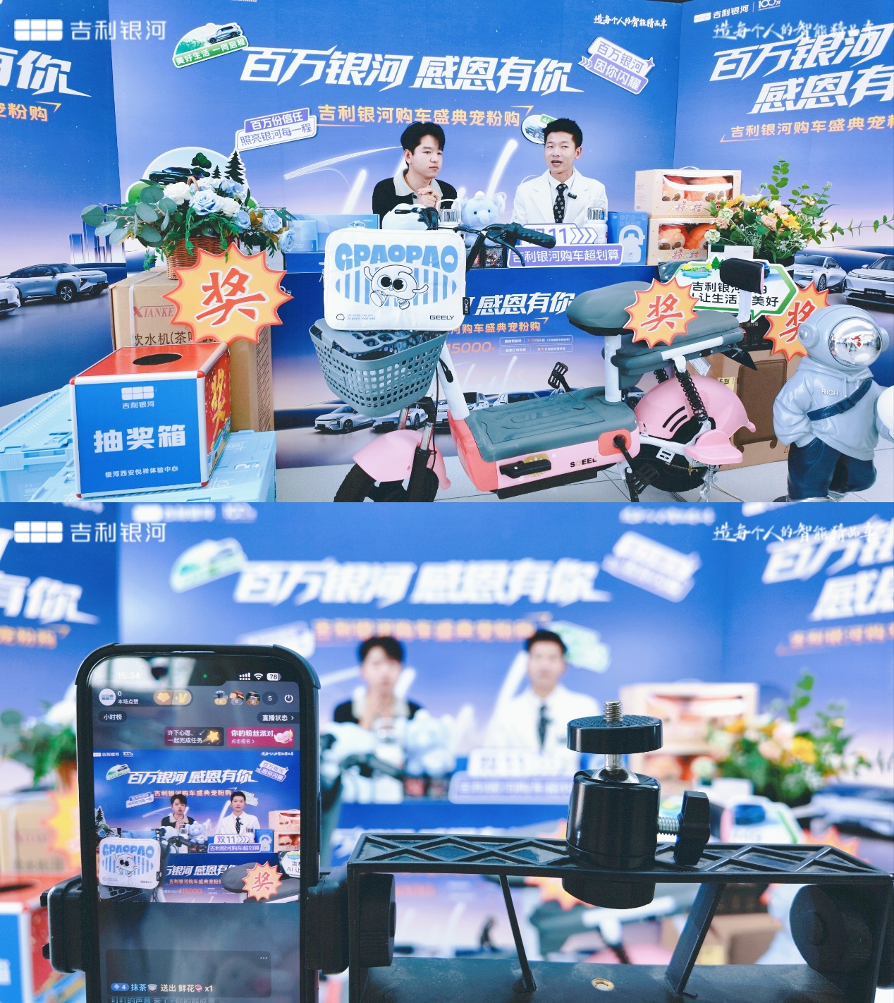 此次直播团购会活动采取了线上线下相结合的形式,不仅为现场的消费者和线上消费者朋友们带来了近距离体验吉利银河品牌魅力的机会,更通过丰富多样的线上抽奖活动,打造了一场集汽车文化、娱乐互动于一体的盛宴。